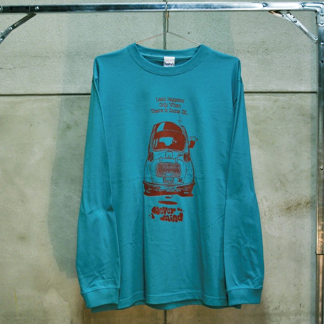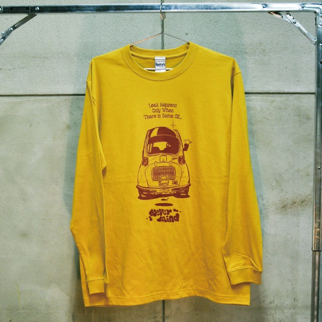 FLAT-1オリジナルブランド Hoity’s 定期的にオイルチェックはされていますか? 古い車やオートバイは特にオイル漏れが気になりますよね。また当時のガバさのせいなのか、エンジンとの相性だったりとかで化学合成油は漏れる!なんて風説もあります。 今回はそんな「オイル漏れ」にまつわるデザイン。 「Leak happens only there is some oil(オイル漏れはオイルが入ってる証拠)」 こちらは誰かが言った名言(迷言?)ですが 50〜60年代の一部のオートバイの設計には”わざと”オイルが漏れる構造にしてあり、その漏れたエンジンオイルでドライブチェーンを潤滑させたりしています。 なくなったらどうするんだよ!なんてツッコミ入れたくなる仕様ですが、知らない時はどこかクランクケースに日々入ってるんじゃないかと不安で仕方ありませんでした。 そんな感じで、オイル漏れにそこまで真剣にならなくても漏れてる間はオイルが入ってる証拠だから大丈夫!って感じで時にはおおらかな気持ちでトラブルも楽しめるようになろう といった意味合いが込められています。 もちろん、漏れている個体が設計上漏れるべきではない場合は壊れる前に修理することをお勧めいたします! イラストはかつて祖父が乗っていた(らしい)スバル360 をモチーフにしています。 柔らかめの質感に後染め風の淡いボディカラーに濃いめのエンジ色でプリント。 Yellow x Burgundy Print Emerald Blue x Burgundy Print の2色展開 ※フロントプリント:胸 SIZE : 身丈/身幅/肩幅/袖丈 M : 69cm/52cm/45cm/62cm L : 73cm/55cm/58cm/63cm XL : 77cm/58cm/52cm/64cm ※写真と実物の色味が異なる場合がございます。 ※初期不良以外の返品・交換は対応できません。商品到着から1週間以内にお問い合わせください。 *お取り扱い注意事項* プリントは、永久的なものではありませんので、洗濯や着用をくり返すことにより、多少うすくなったり、ひび割れや、脱落を生じることがありますので、あらかじめ御了承下さい。尚、プリント部分の揉み洗い、アイロンがけは、絶対にお避け下さい。 また、この製品は、縫製後、製品洗いをしております。その為、1枚1枚の色の出方、風合い、サイズ等微妙に違いますが、これはこの加エの特徴です。他の製品では味わえない良さをお楽しみください。 お洗濯につきましては、液温は30℃を限度とし、洗濯機で非常に弱い洗濯が可能となっております。(クリーニングにつきましても、非常に弱いウェットクリーニングのみ可となっております。) 洗剤は必ず中性洗剤を使用して下さい。酸素系漂白剤及び、蛍光剤入りの洗剤を使用されますと、部分的に変色や、本来の色合いを失うことがあります。お洗濯は必ず短時間で処理し、つけ置き洗いや、濡れたままの放置は絶対にお避け下さい。洗濯後は形をととのえてすぐ干して下さい。素材の性質上、多少の縮みがあります。単独洗いにてお願い致します。この製品は、タンブラー乾燥の際、多少縮むことがあります。アイロンは、当て布をしてかけてください。濃色の製品は、色移りすることがあります。汗をかいたり、雨や水に濡れたままの長時間放置は避けてください。