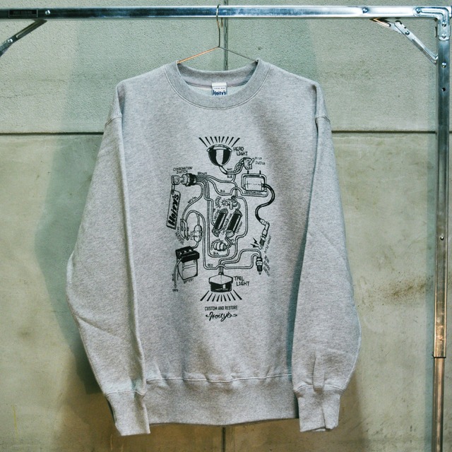 FLAT-1オリジナルブランド Hoity’s オートバイの配線処理はしたことありますか?カラフルな色の配線が綺麗に束ねられてフレームや外装の中に納められている…とは限らず、ヘッドライトケースを開けた瞬間に脳みそみたいにシワクチャにされて無理やり納められた配線たちを見て幻滅しやる気を損なったことがある方は少なくないはずです。 そんな貴殿の為にポップでわかりやすく図解しました! イメージは「子供の頃に使ってた道路のイラストが描かれたカーペット」 一部の方々はこれの懐かしさが共有ができると思います。 オートバイを走らせるのに最低限必要なものだけをチョイスし、それぞれ大体同じ並びになるように配置して線を繋げました。 これを見て配線への苦手を克服する足掛かりなれば幸いです。 生地は12ozと厚めですがパイル地で柔らかい触り心地となっております。 Natural x Crimson Gray x Black の2色展開 綿100% 裏パイル生地 ※フロントプリント:胸 SIZE : 身丈/身幅/肩幅/袖丈 M : 69cm/55cm/50cm/61cm L : 72cm/58cm/53cm/62cm XL : 75cm/61cm/56cm/63cm ※写真と実物の色味が異なる場合がございます。 ※初期不良以外の返品・交換は対応できません。商品到着から1週間以内にお問い合わせください。 *お取り扱い注意事項* プリントは、永久的なものではありませんので、洗濯や着用をくり返すことにより、多少うすくなったり、ひび割れや、脱落を生じることがありますので、あらかじめ御了承下さい。尚、プリント部分の揉み洗い、アイロンがけは、絶対にお避け下さい。 また、この製品は、縫製後、製品洗いをしております。その為、1枚1枚の色の出方、風合い、サイズ等微妙に違いますが、これはこの加エの特徴です。他の製品では味わえない良さをお楽しみください。 お洗濯につきましては、液温は30℃を限度とし、洗濯機で非常に弱い洗濯が可能となっております。(クリーニングにつきましても、非常に弱いウェットクリーニングのみ可となっております。) 洗剤は必ず中性洗剤を使用して下さい。酸素系漂白剤及び、蛍光剤入りの洗剤を使用されますと、部分的に変色や、本来の色合いを失うことがあります。お洗濯は必ず短時間で処理し、つけ置き洗いや、濡れたままの放置は絶対にお避け下さい。洗濯後は形をととのえてすぐ干して下さい。素材の性質上、多少の縮みがあります。単独洗いにてお願い致します。この製品は、タンブラー乾燥の際、多少縮むことがあります。アイロンは、当て布をしてかけてください。濃色の製品は、色移りすることがあります。汗をかいたり、雨や水に濡れたままの長時間放置は避けてください。