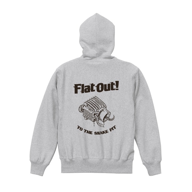FLAT-1 オリジナルブランド "Hoity's" の新作 FLAT OUT!! Pullover Hoodie. ”FLAT OUT!" というのは”全開!"という意味。 要約すると ”地獄までブチ回せ‼” となります。 よく回るHONDA製OHV横型エンジンのシリンダーをモチーフにしており そこに"強い生命力"と"信仰"の象徴であるヘビを住まわせることで シリンダ内壁への無傷息災を願う大変縁起の良いイラストです。 ブチ回さないと坂が上れない人 ブロー寸前までアクセルカチ回すのが大好きなあなたにぜひ着て頂きたいデザインとなっております。 12.7ozと厚めの生地に存在感のあるフード。両サイドはリブ生地のサイドパネル仕様と、流行りのヴィンテージライクなボディ形状。 表面はオープンエンド糸を使用しており古っぽいゴアゴアした質感です。 プリントカラーもこだわって、絶妙な中間色を仕様。USから取り寄せた油性インクで厚めで綺麗な仕上がりになってます。 2色展開 Black :Carrot Orange Ash Gray :Black Chokolate 素材 : 綿 75% ポリエステル 25%(裏起毛) ※画像はイメージです。実寸に限りなく近付けてますが、プリントのサイズ感は着衣写真を参考にしてください。 #HONDA #OHV #横型エンジン #スーパーカブ #C100 #HondaC100