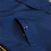 袖口はスナップボタンタイプでよりワーキングウェア風となっています。ボタンはYKK製を使用しています。
